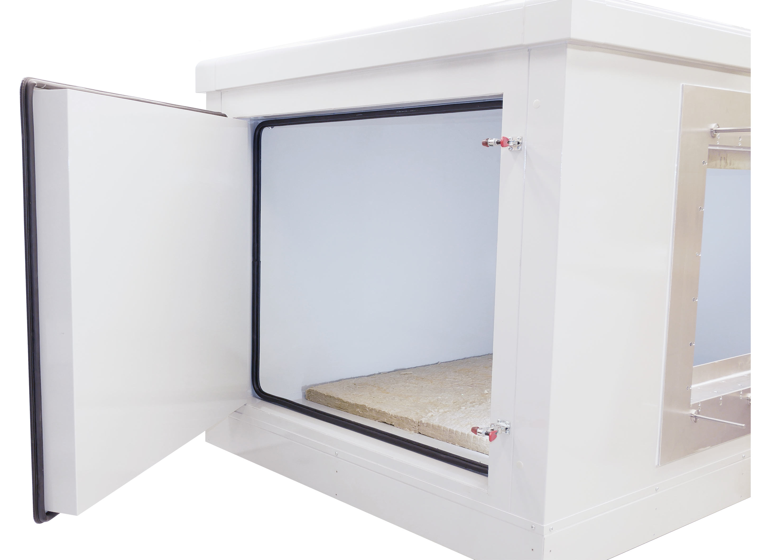 舱内准扩散场由白噪声信号驱动的四个扬声器产生,麦克风天线用于评估舱内声场,使用符合ASTM C423和ISO 354的专有程序测量吸声系数。